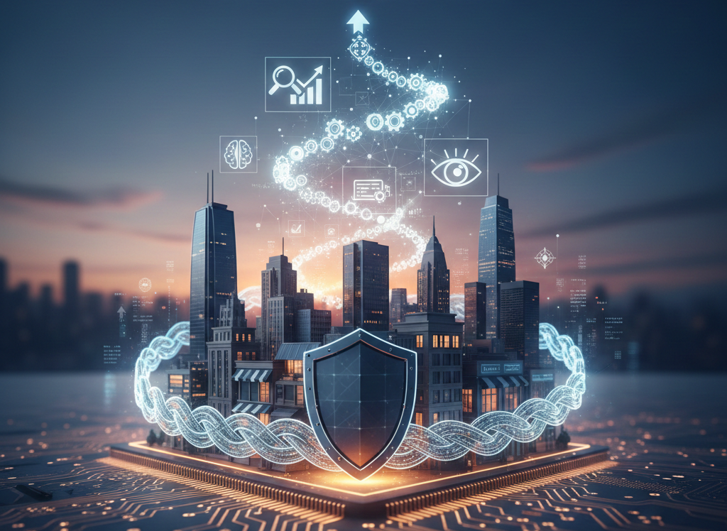 A shield represents our mission: protecting systems, data, and operations so businesses can grow with confidence.